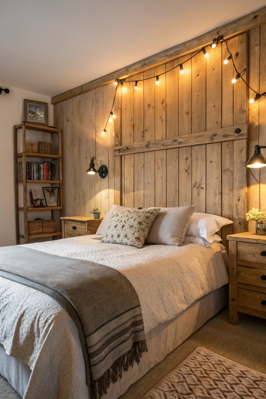 - Vintage Wood and Metal String Light Collection: Establish a warm ambiance using vintage-inspired string lights, ideal for countryside bedroom environments.