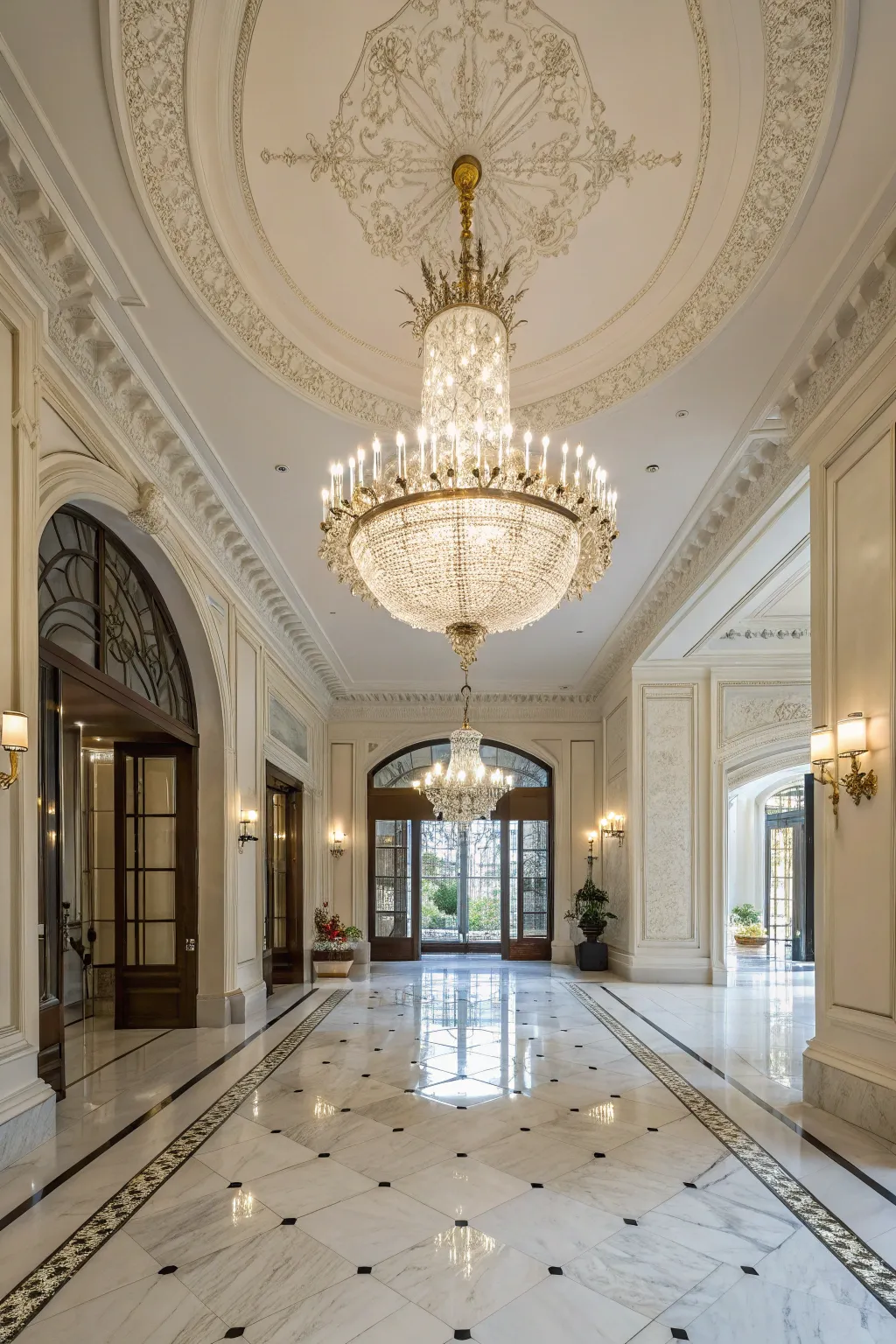 • Exquisite Glass Chandelier: Illuminate your foyer and enthrall guests with a striking and opulent glass chandelier.