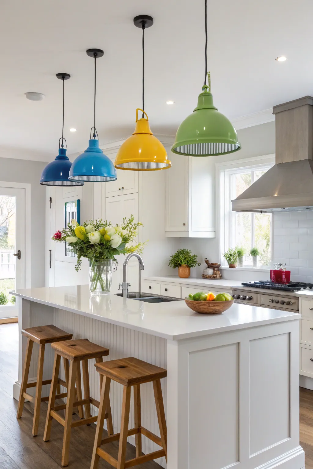 - Colored Glass Pendants: Brighten your kitchen with vibrant pendant lights adding character and style to the space.