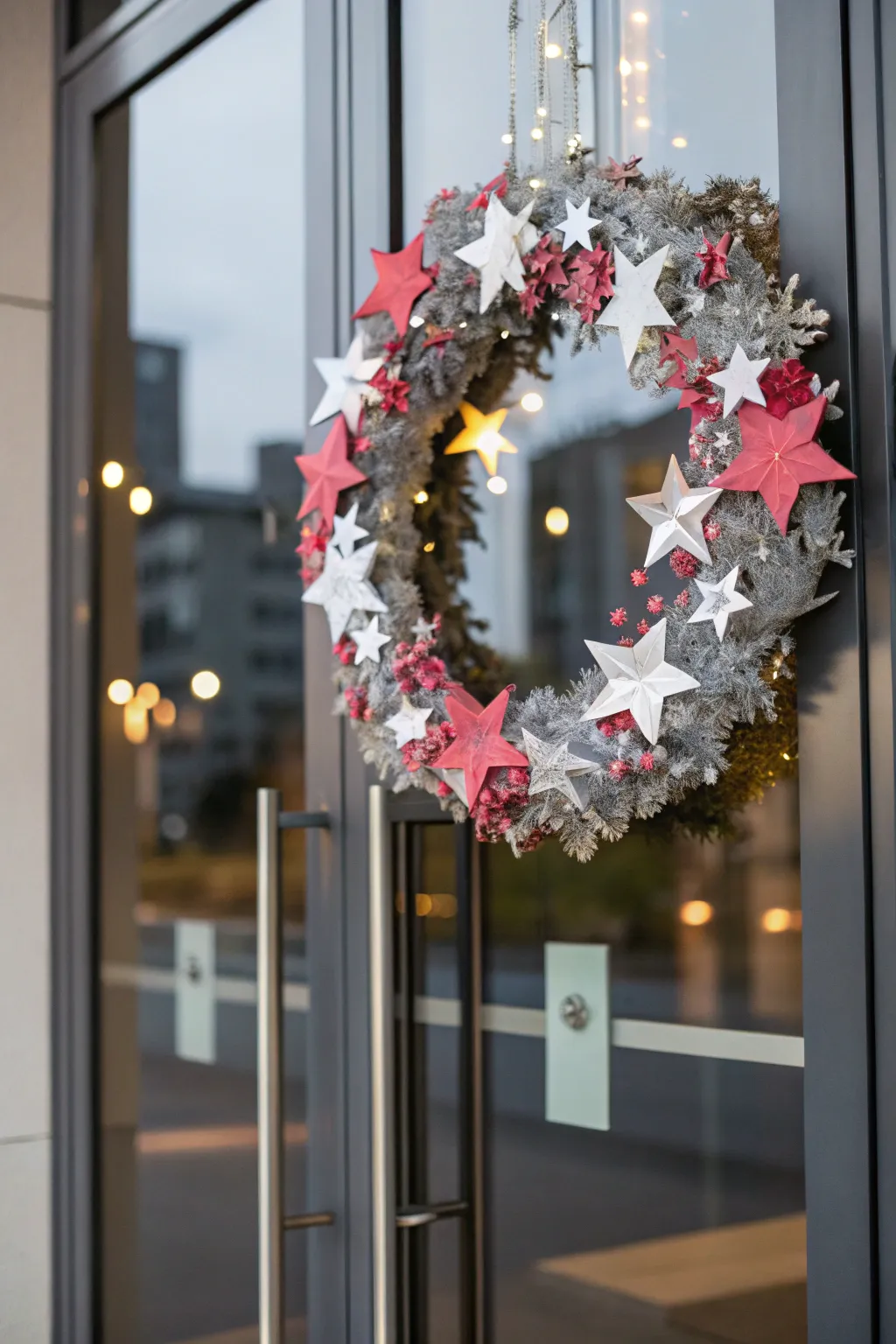For a modern feel, cut stars from colored stock and scatter some silver glitter. It’s a straightforward yet eye-catching means of adding a hint of playfulness to your door.