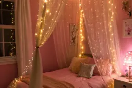 - Bed Canopy with String Lights: Add a magical touch to any shared bedroom with a bed canopy and string lights.