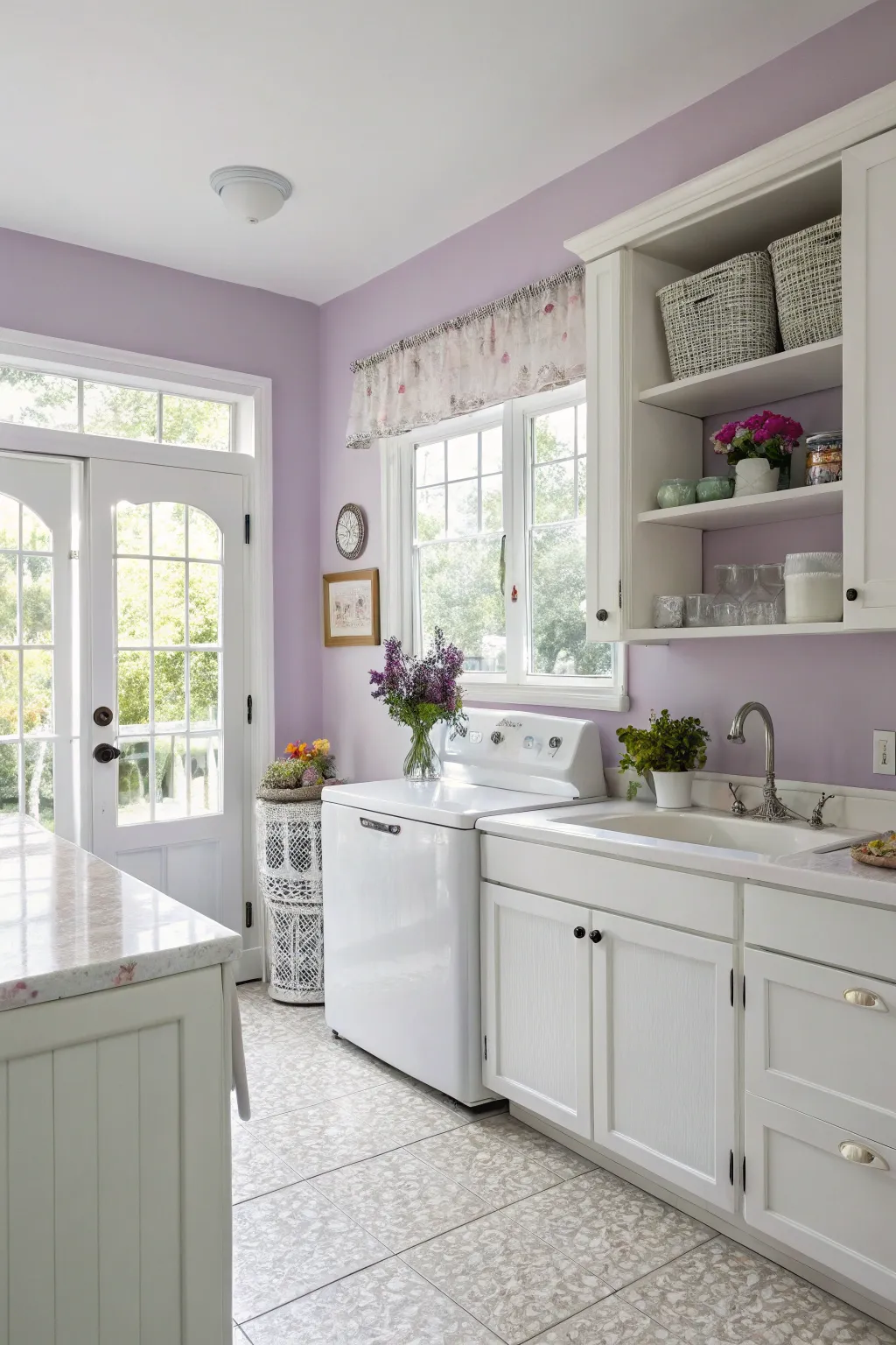 - Lavender Wall Coating: Transform your cooking space through calming lavender walls, creating a soothing and elegant ambiance.