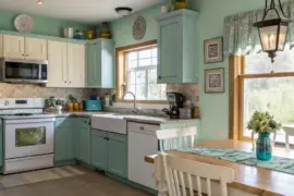 A kitchen island that also functions as a table provides a versatile workspace. It’s excellent for meal prep and relaxed dining, especially in smaller kitchens.