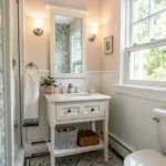 A front entryway featuring cozy seating and subtle lighting can instantly amplify your farmhouse’s appeal. I find that incorporating a wood seat and beacons yields a delightfully hospitable vibe.