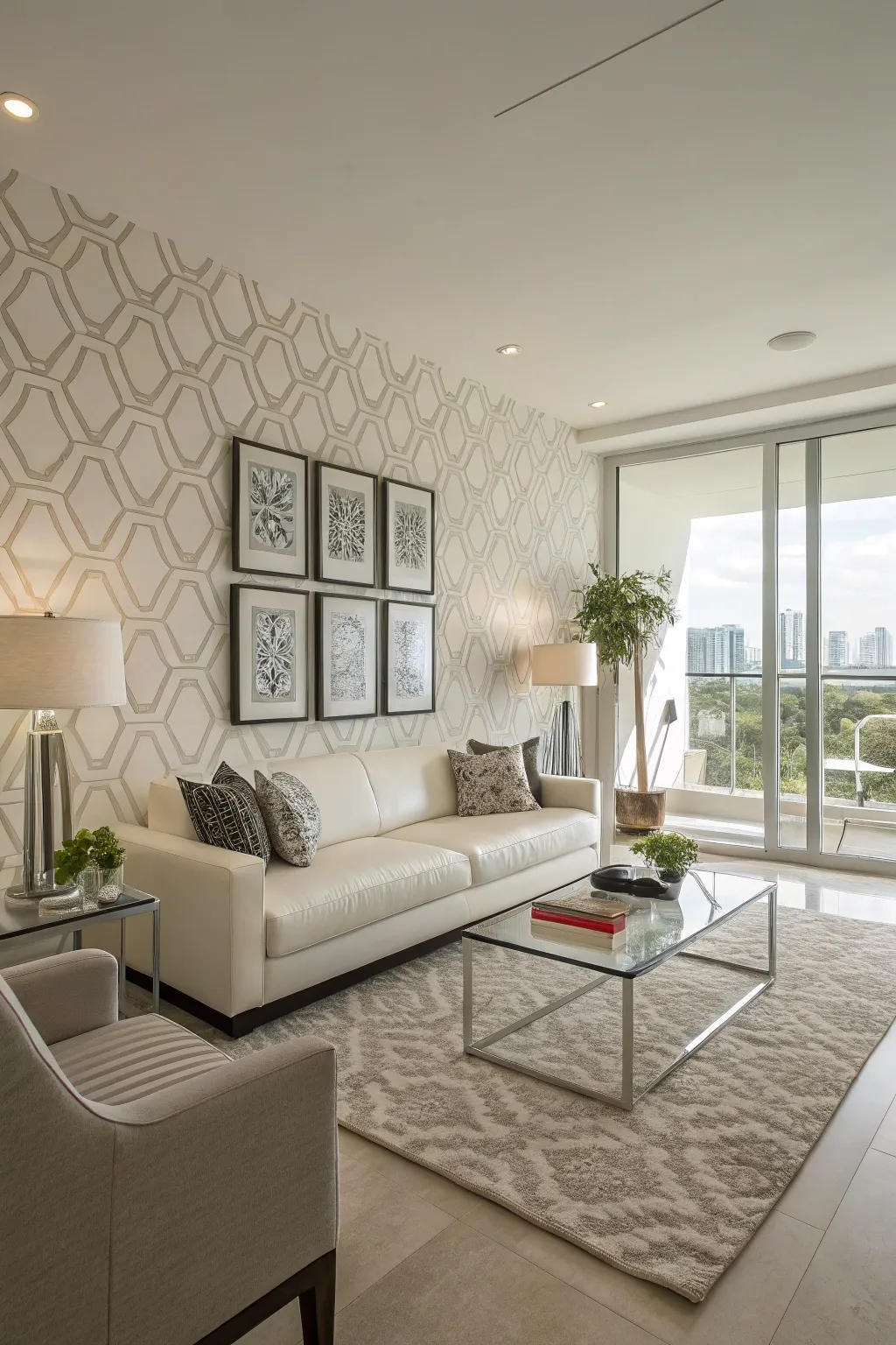 - Geometric Design Wall Covering: Transform your space with striking geometric wallpaper, adding modern elegance and visual intrigue.