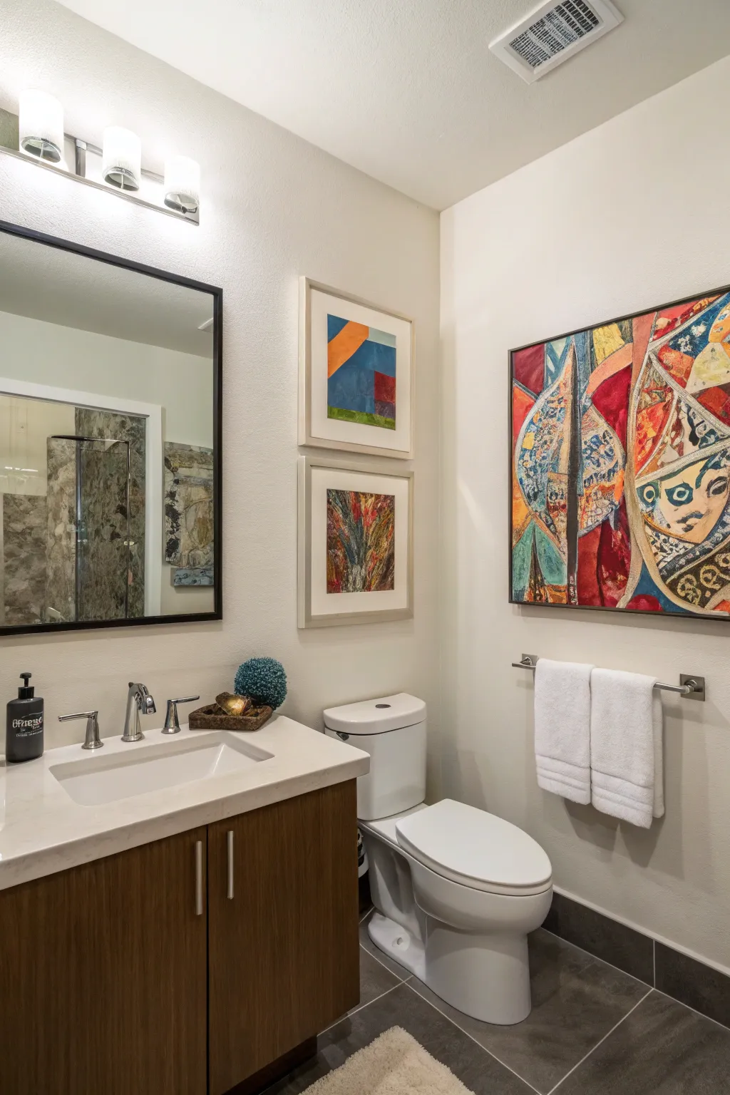 - Vibrant Modern Art Prints: Illuminate your bathroom with vibrant modern prints to create a lively and inviting atmosphere.