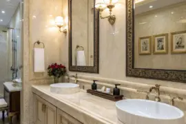 • Marble Top Bathroom Vanity: Enhance your space with a marble top vanity, offering sophistication and durability for modern bathrooms.