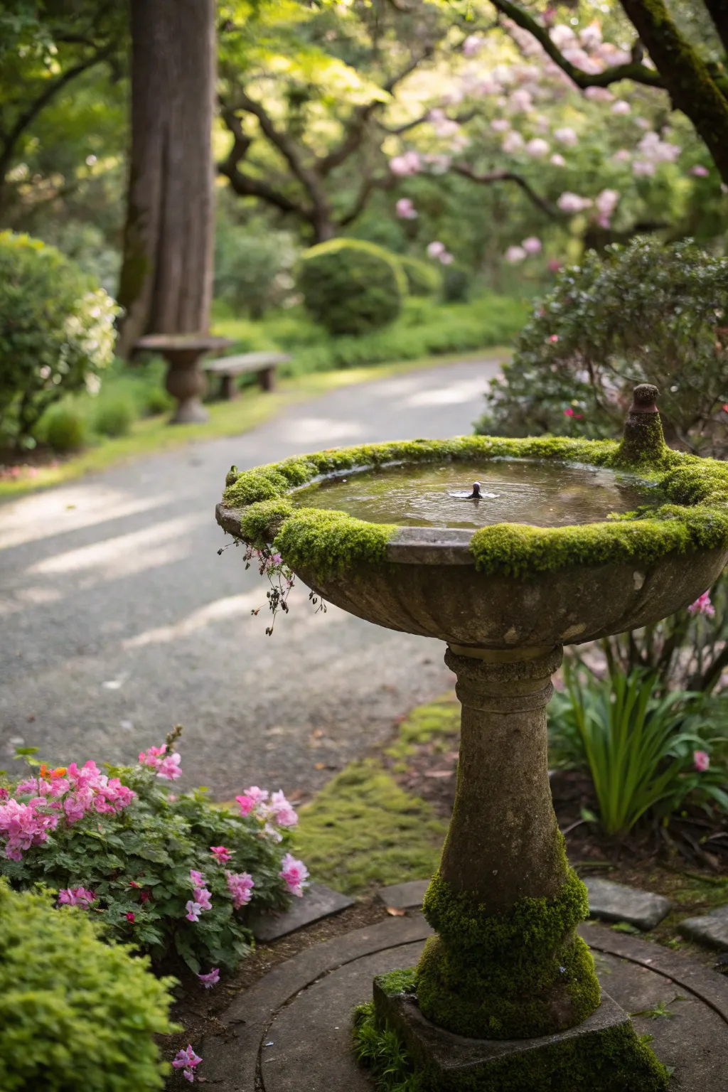 • Ornamental Stone Avian Bath: Inject elegance through this stone avian bath serving as a central feature for your moss garden endeavor.