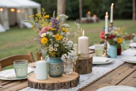 Create an environmentally friendly floral decoration using in-season flowers and upcycled materials. I often use antique vases from local thrift shops to bring in a special detail.