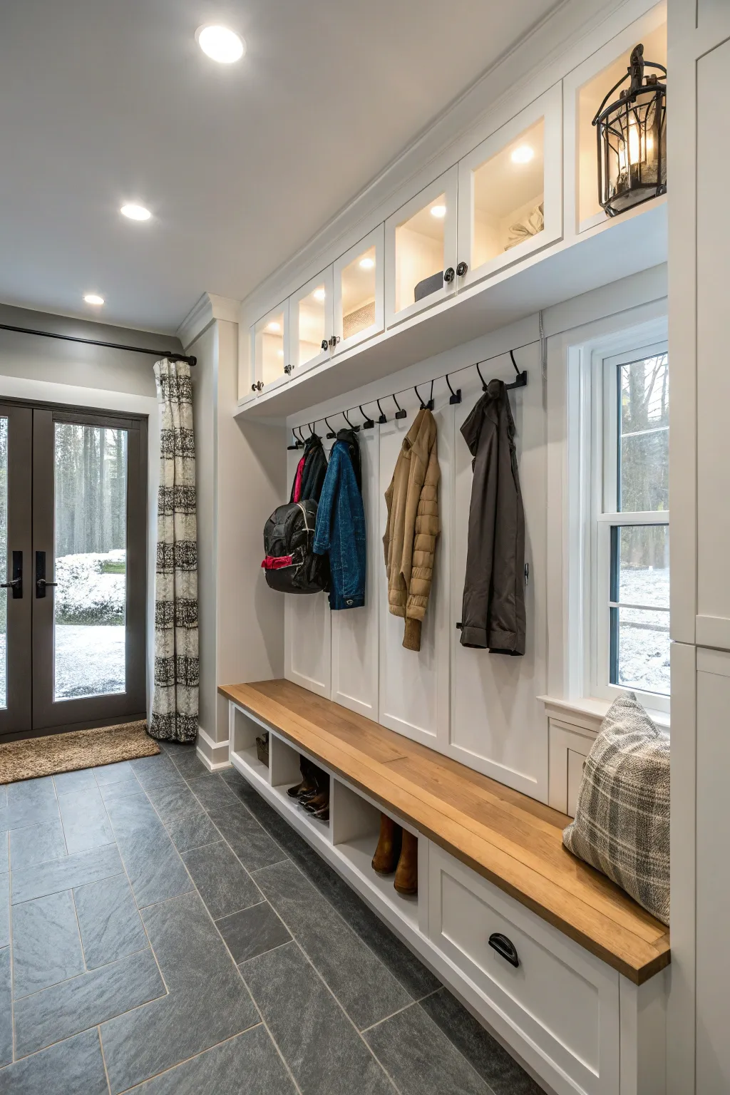 • Wall Fixtures for Jackets and Bags: Maximize your mudroom area by installing versatile wall fixtures for jackets and bags.