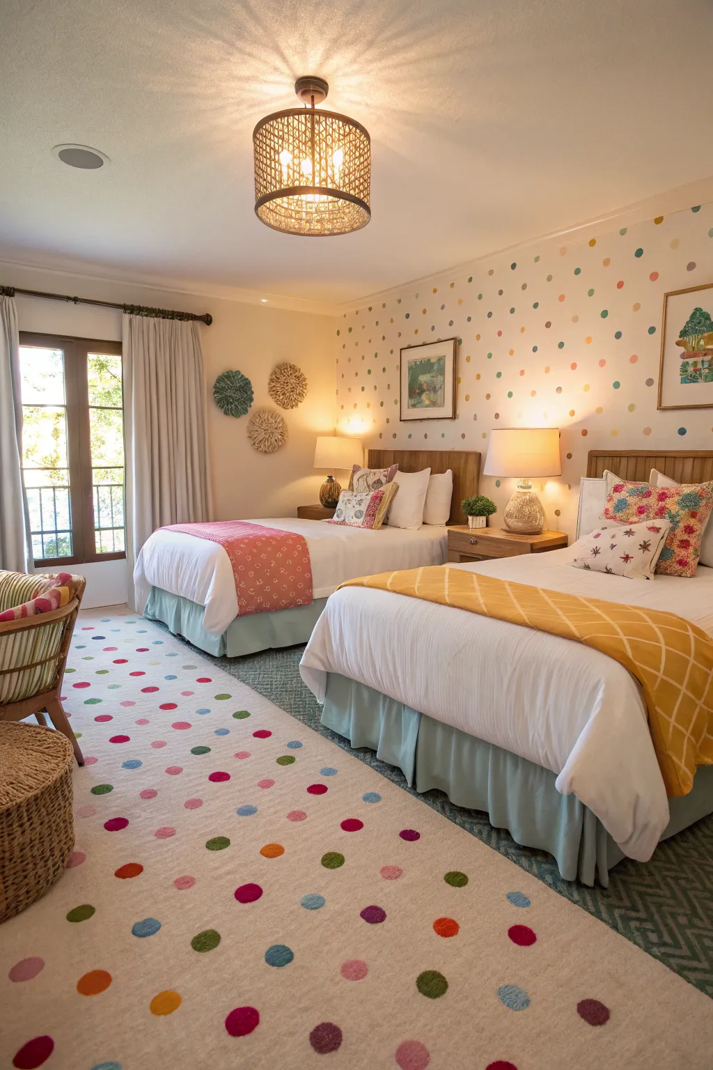Include a hint of fun with light color dots that can brighten any space. I used this idea in a guest room, and it brings smiles.