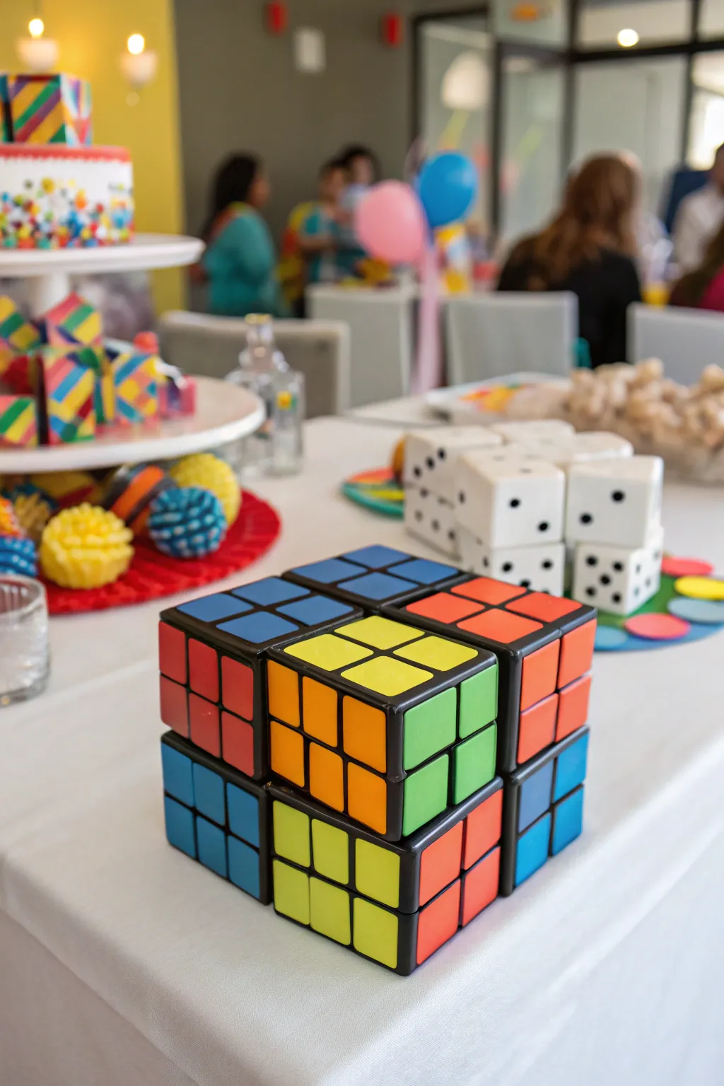 Disperse Puzzle Cubes around for an iconic 80s aspect. I appreciate how they also act as fun icebreakers at gatherings.