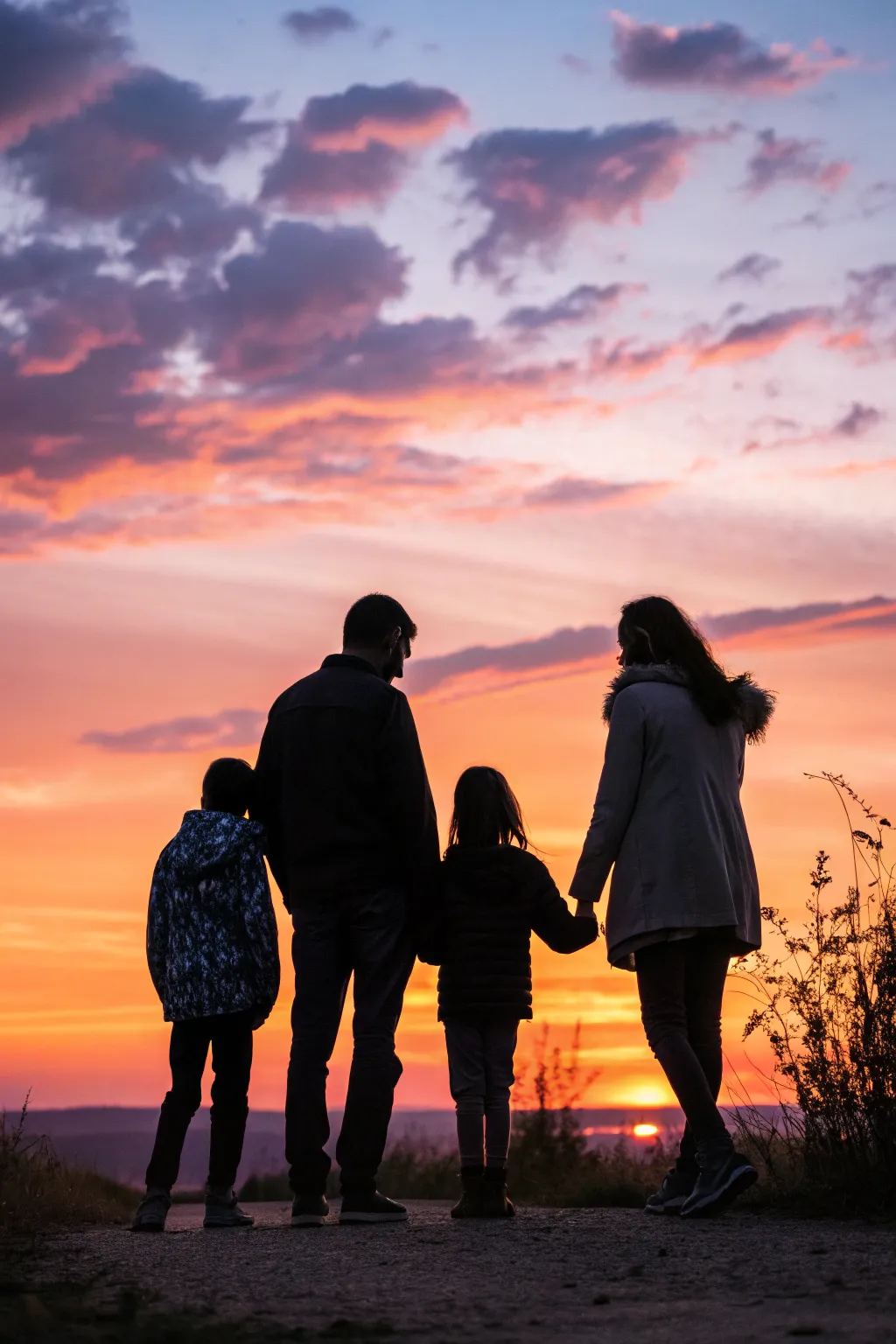 Making profiles against a sunset creates dramatic, beautiful images. The sky’s changing colors add a stunning backdrop that highlights your family’s unique shapes.