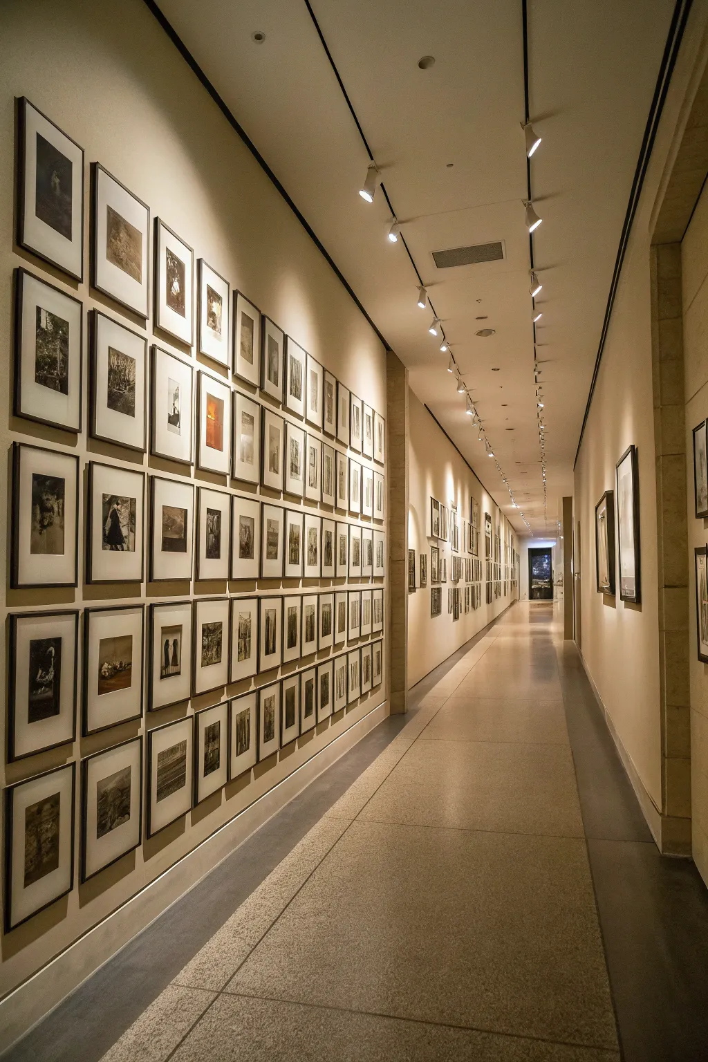 Pair mirrors with your frames to amplify light and visual space. This technique tricks the eye into making my tight hallway feel more spacious.