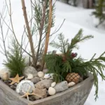 Disperse a selection of pinecones across your planters, introducing an additional element of texture and rustic appeal. They bring back memories of comfortable forest strolls during winter.