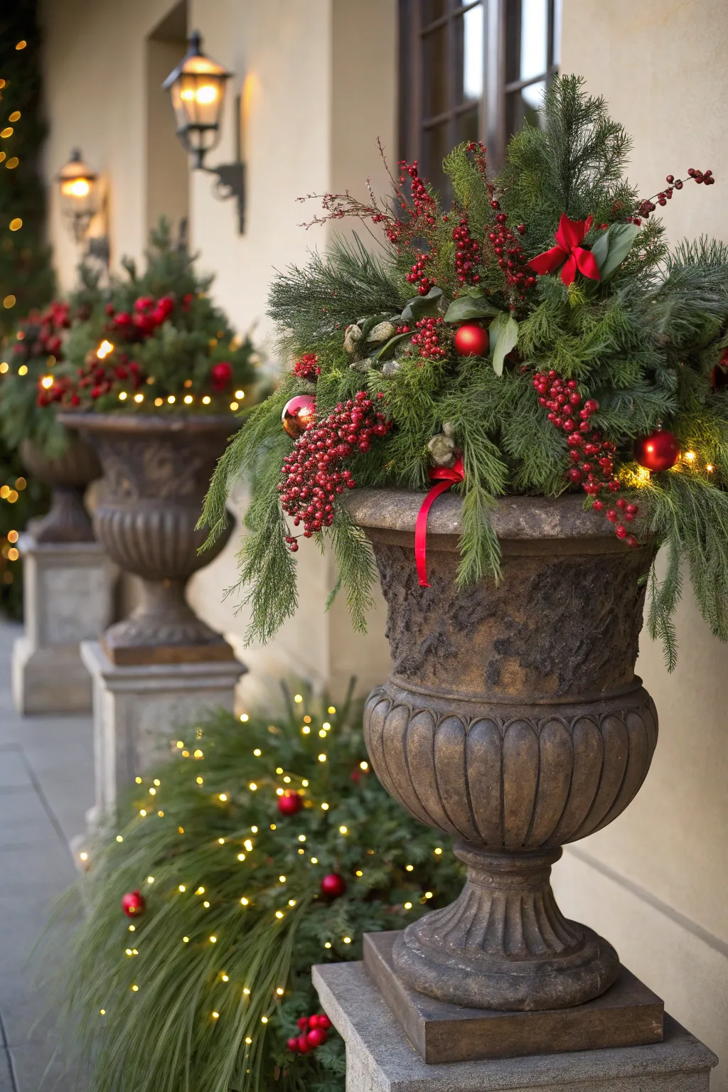• Ornamental Urn Container: Revolutionize your porch using a classic urn to enhance unbalanced holiday arrangements effortlessly.