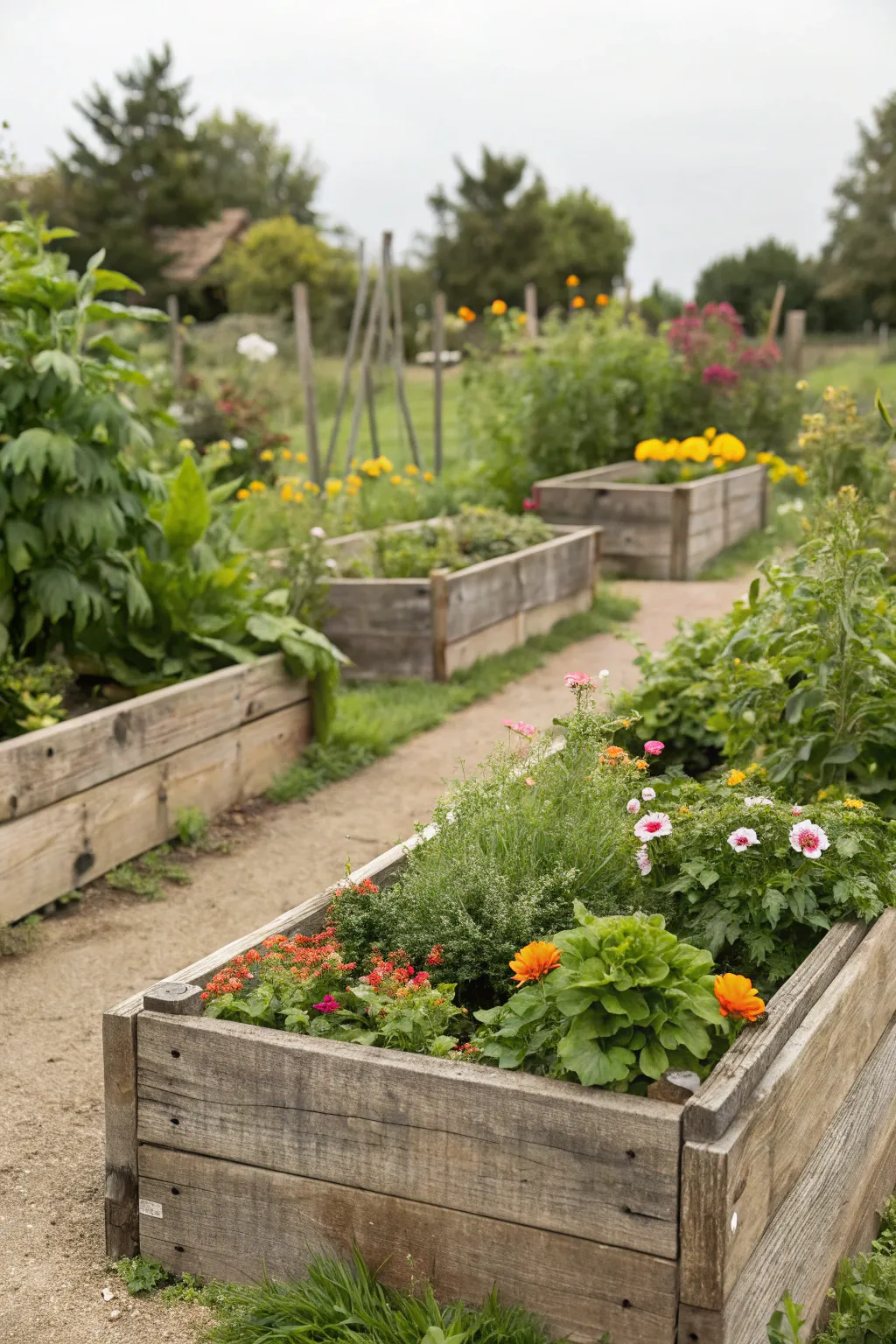 Upcycle old pallets into raised beds for a budget-friendly option. They bring a casual, laid-back vibe to your garden.