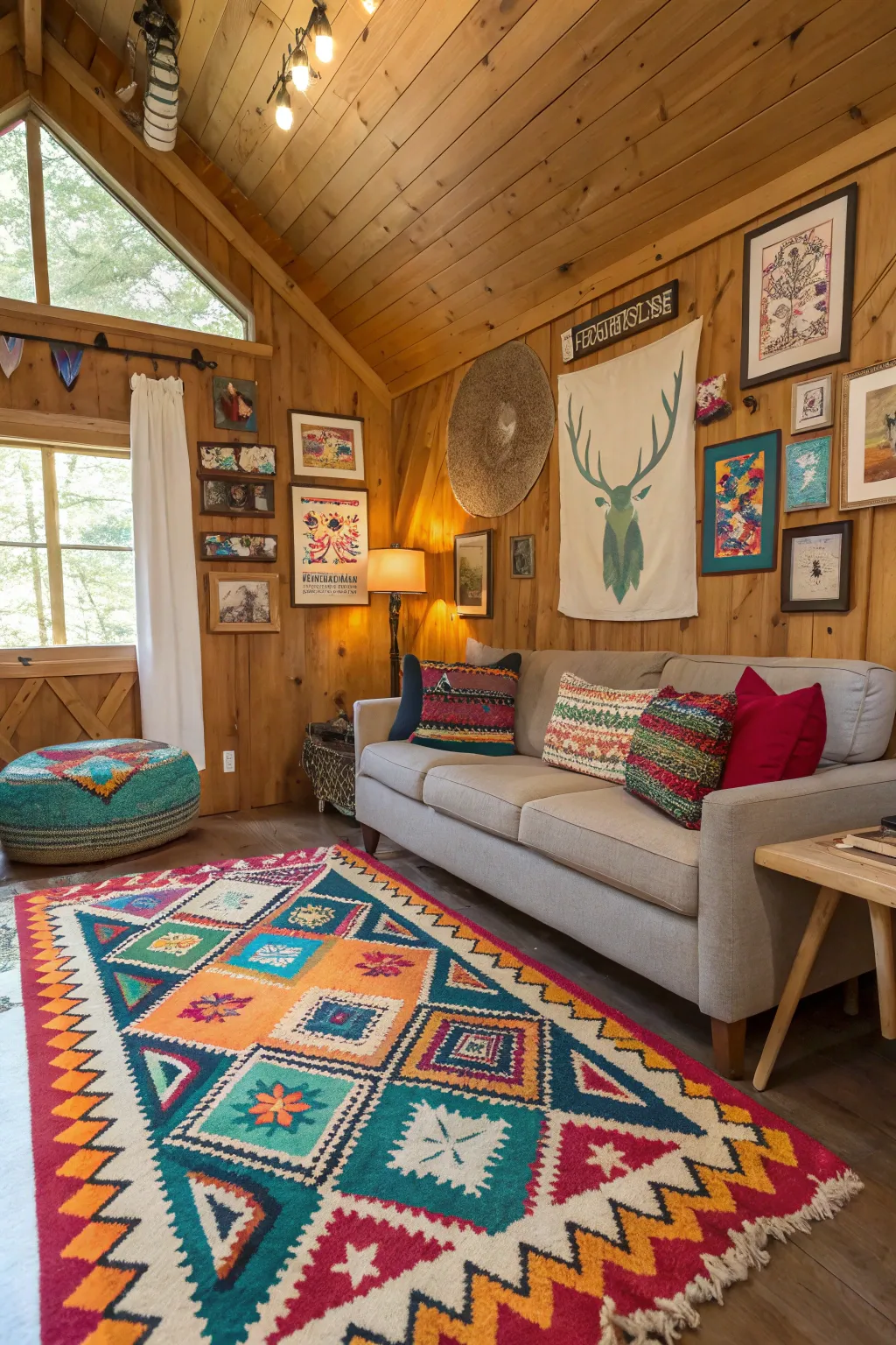 - Geometric Print Floor Covering: Enhance your cabin’s charm with a colorful geometric rug. Add warmth and style instantly.
