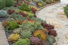 Experiment with hues by combining various shades of smooth stones. This introduces a vibrant element and makes any garden feature stand out.