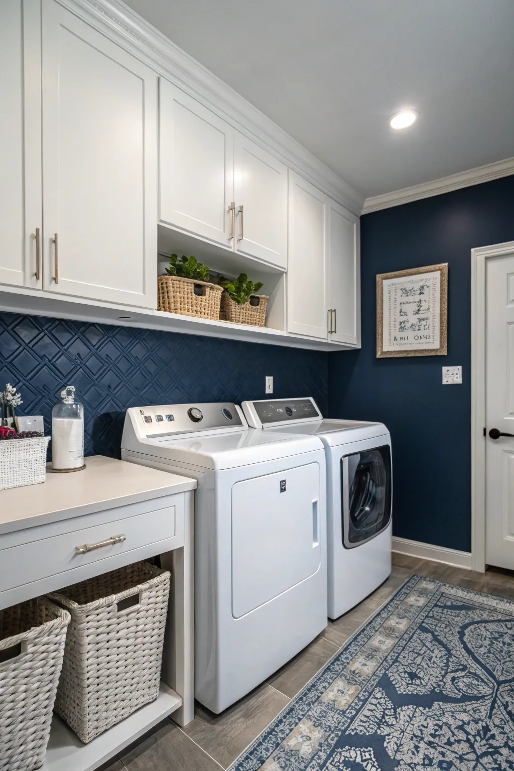 - Deep Ocean Blue Floor Rug: Introduce comfort and flair using a captivating deep ocean blue floor rug, ideal for elevating your laundry room.