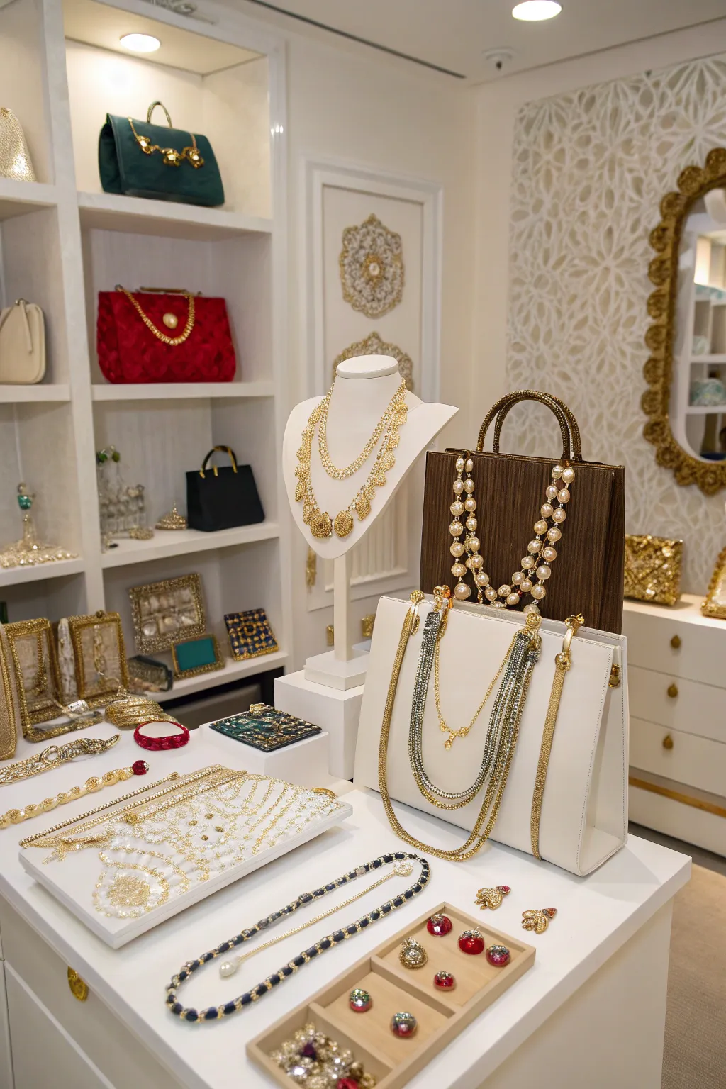 Display your accessories, such as jewelry and bags, as part of the decor. This is a clever way to personalize your space with your fashion favorites.