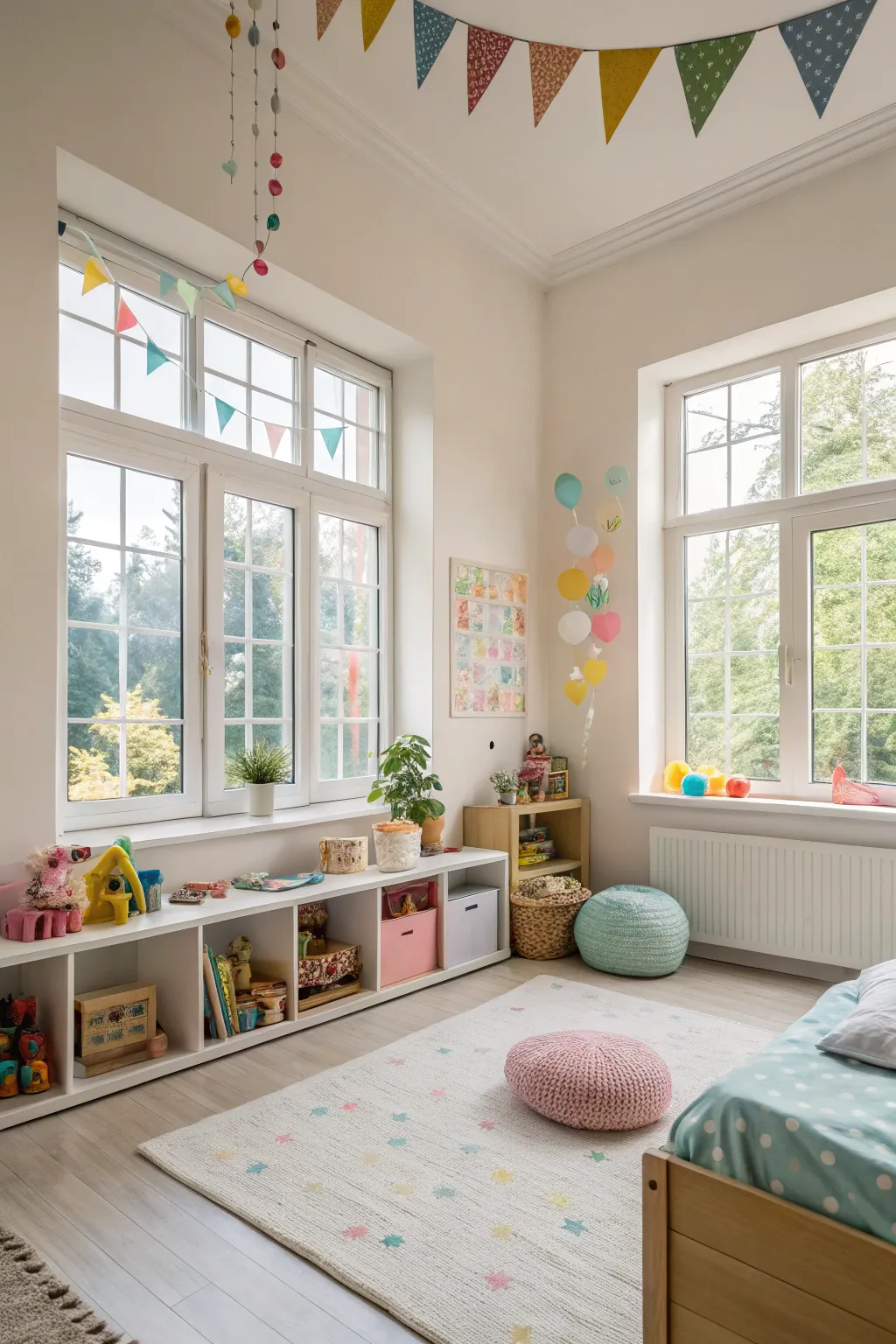 • Multi-Colored Storage Fixtures: Organize books and toys using colorful fixtures. Keep the space organized and filled with life!