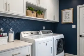 Add some life to the area with striking decorative tiles or a bright backsplash. This small change made my laundry room feel more welcoming and lively.
