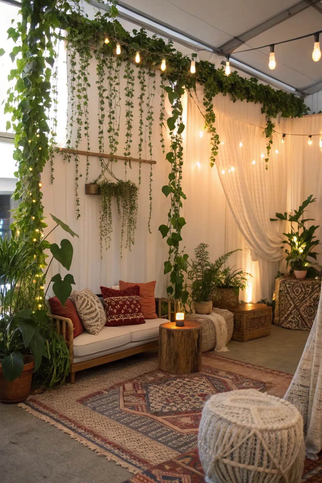 Combine vines with textured features like macrame or woven textiles for a vibrant, layered aesthetic.