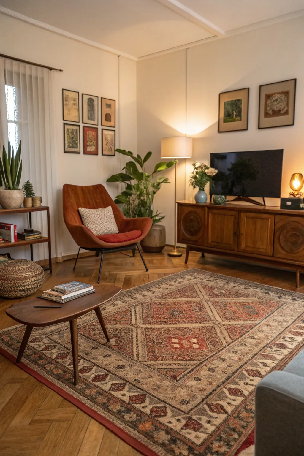 Combining various styles can lead to a truly unique space. In my apartment, a heritage-inspired rug contrasts with modern furniture, adding a personal touch.