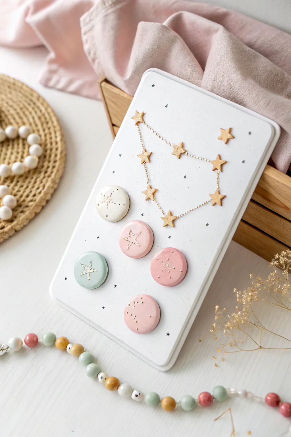 Sew your favored constellations onto textile to fashion distinctive wall embellishments. This constitutes a serene undertaking that introduces a handmade element to any space.
