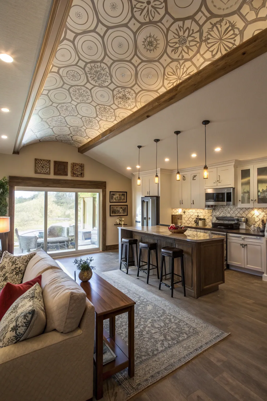 Partial walls or unique ceiling designs can subtly divide spaces without creating a complete separation. This method keeps areas distinct yet connected, a tactic I frequently employ.