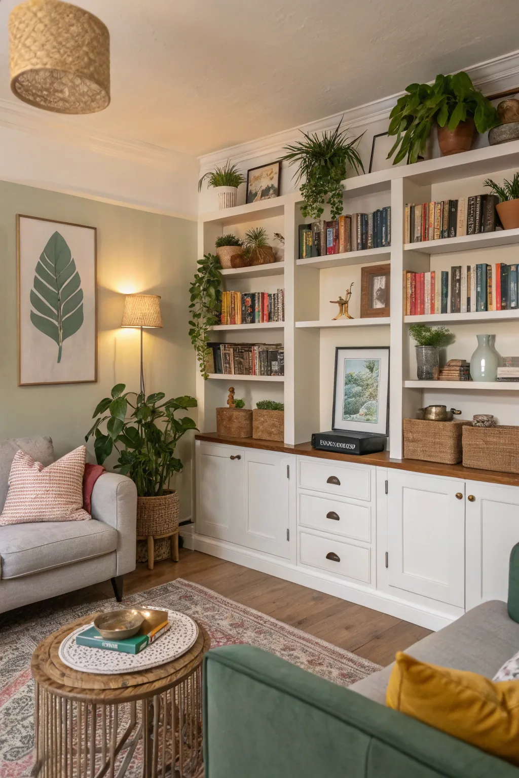 Paint your display units the same color as your walls for a unified appearance. This technique ensures that your decor items are the stars of the show.