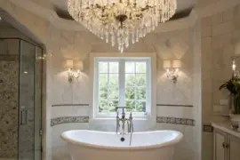 Bringing in natural wood features, such as cabinets or vanities, will add a cozy feel to your bathroom. I’ve personally seen how a wood vanity not only brings country appeal but also acts as an eye-catching feature.