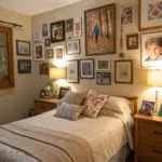 Make a photo display to add character and depth without using floor space. I blend family photos with art pieces to make the space uniquely mine.