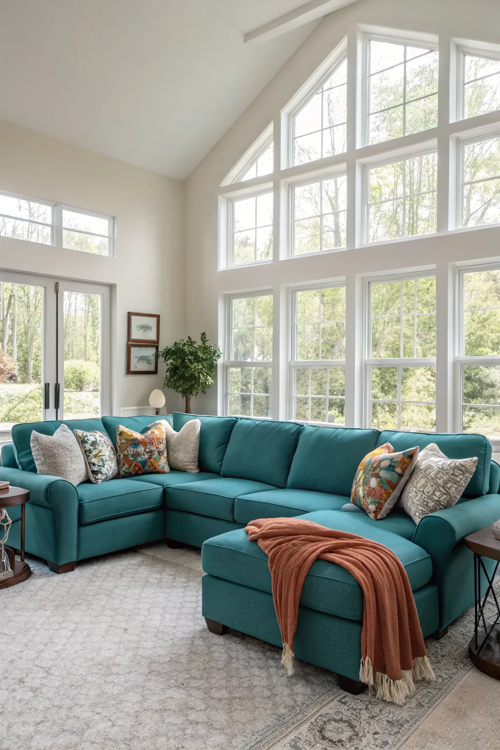 - Teal Accent Cushions: Enhance comfort and style on your sectional with these vibrant teal accent cushions.