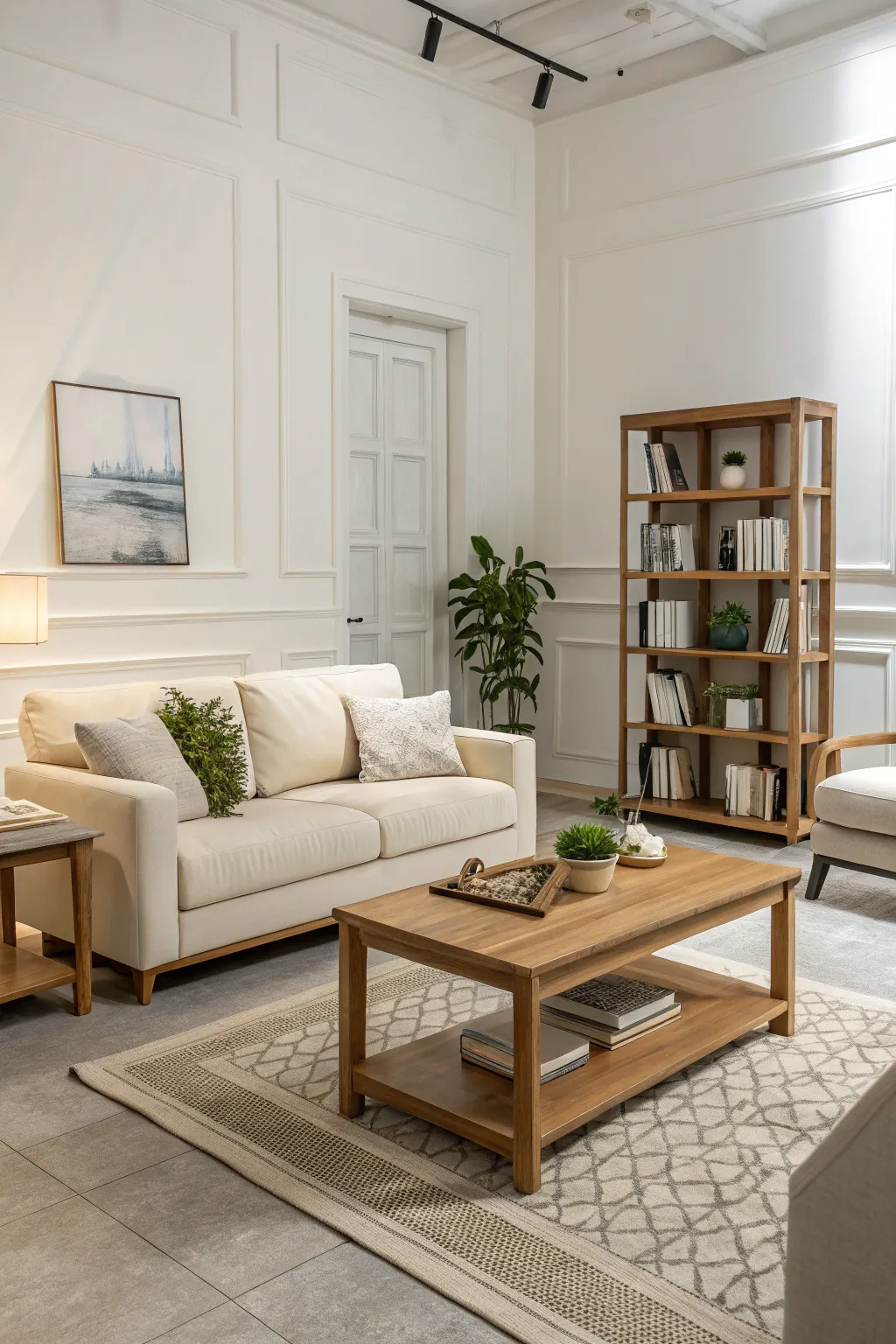 - Understated Wooden Center Table: Enhance your space with a sleek wooden coffee table emphasizing clean lines and natural beauty.