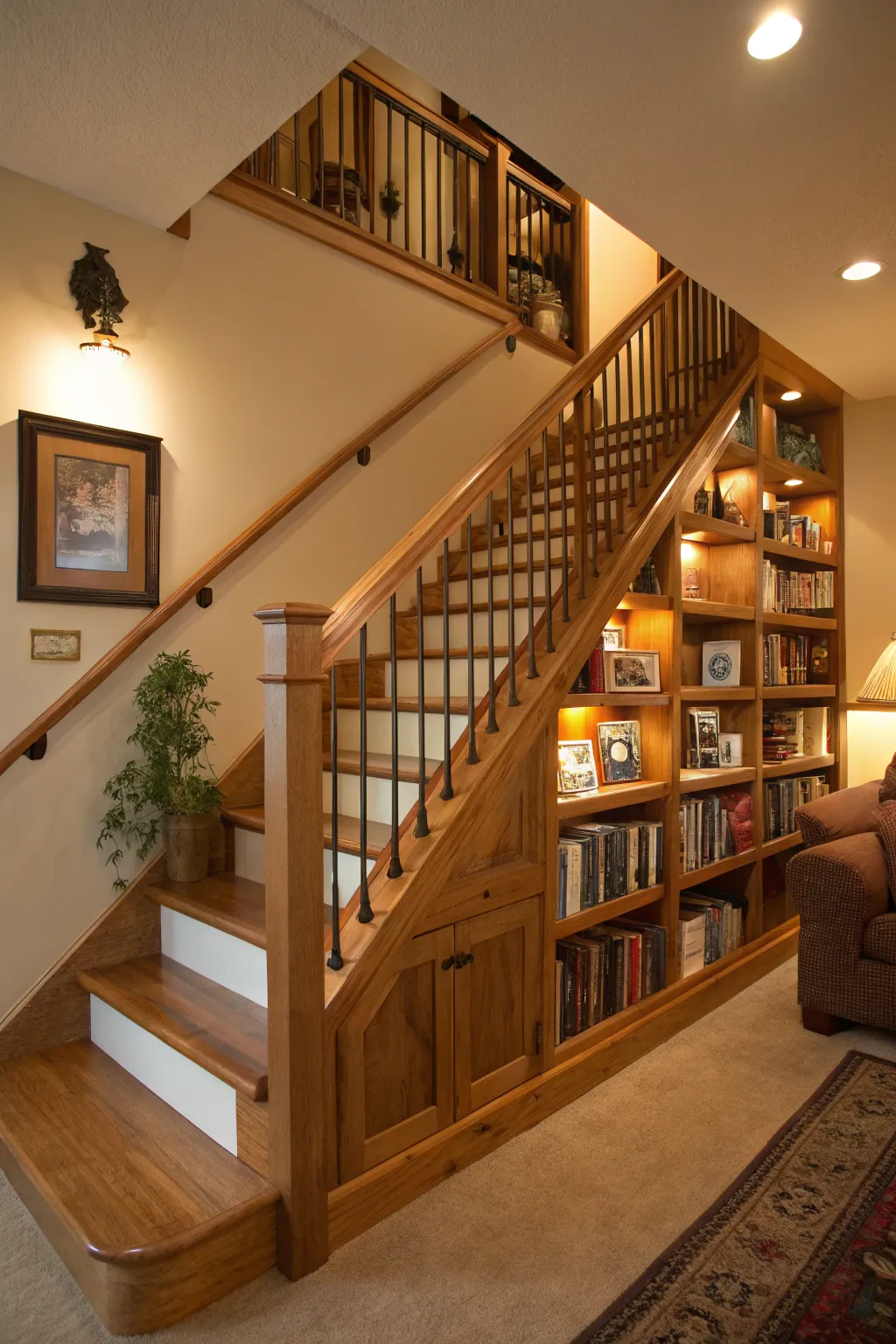 • Stylish Wood Stair Railing: Bring in warmth with a wooden railing that perfectly blends elegance and practicality.
