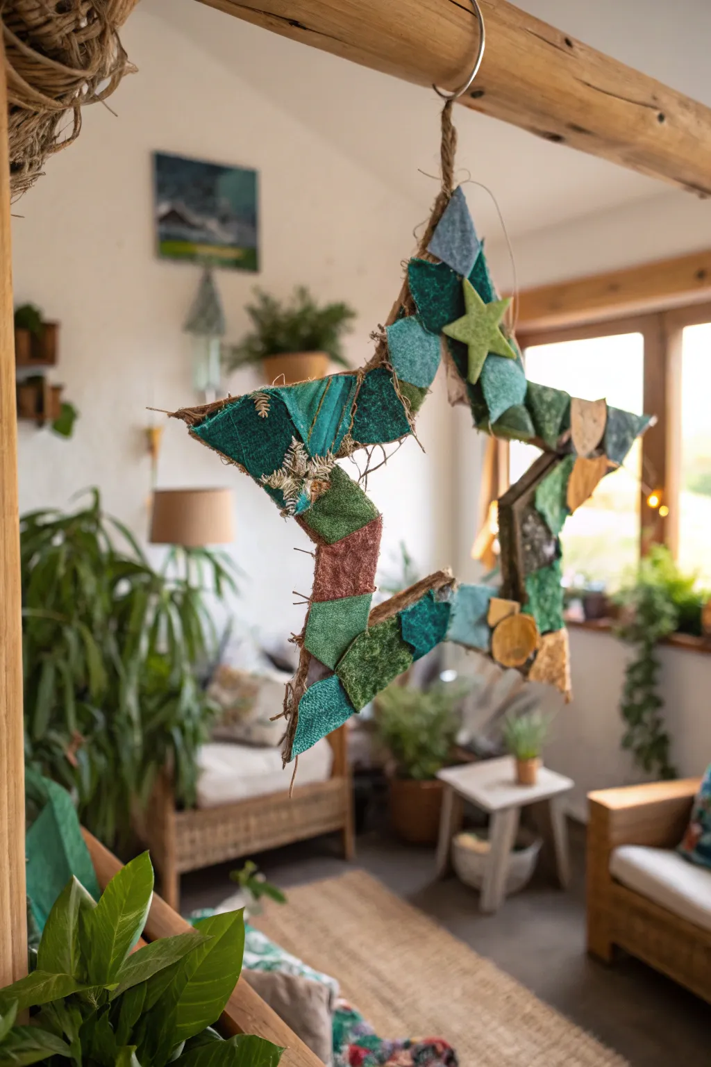 Incorporate wooden beads to your star wreath for a hint of boho elegance. I observe that the natural wood shades enhance my existing boho decor elements beautifully.