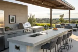 Introduce layers of visual interest using layered steps. They provide a dynamic appearance that can connect different patio levels, perfect for optimizing space in a compact garden.