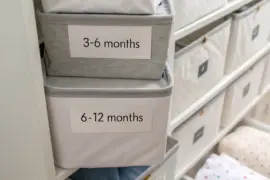 Labeling your storage boxes makes it easier to quickly see what’s inside, especially when you’re in a rush. I’ve realized it saves me so much time!