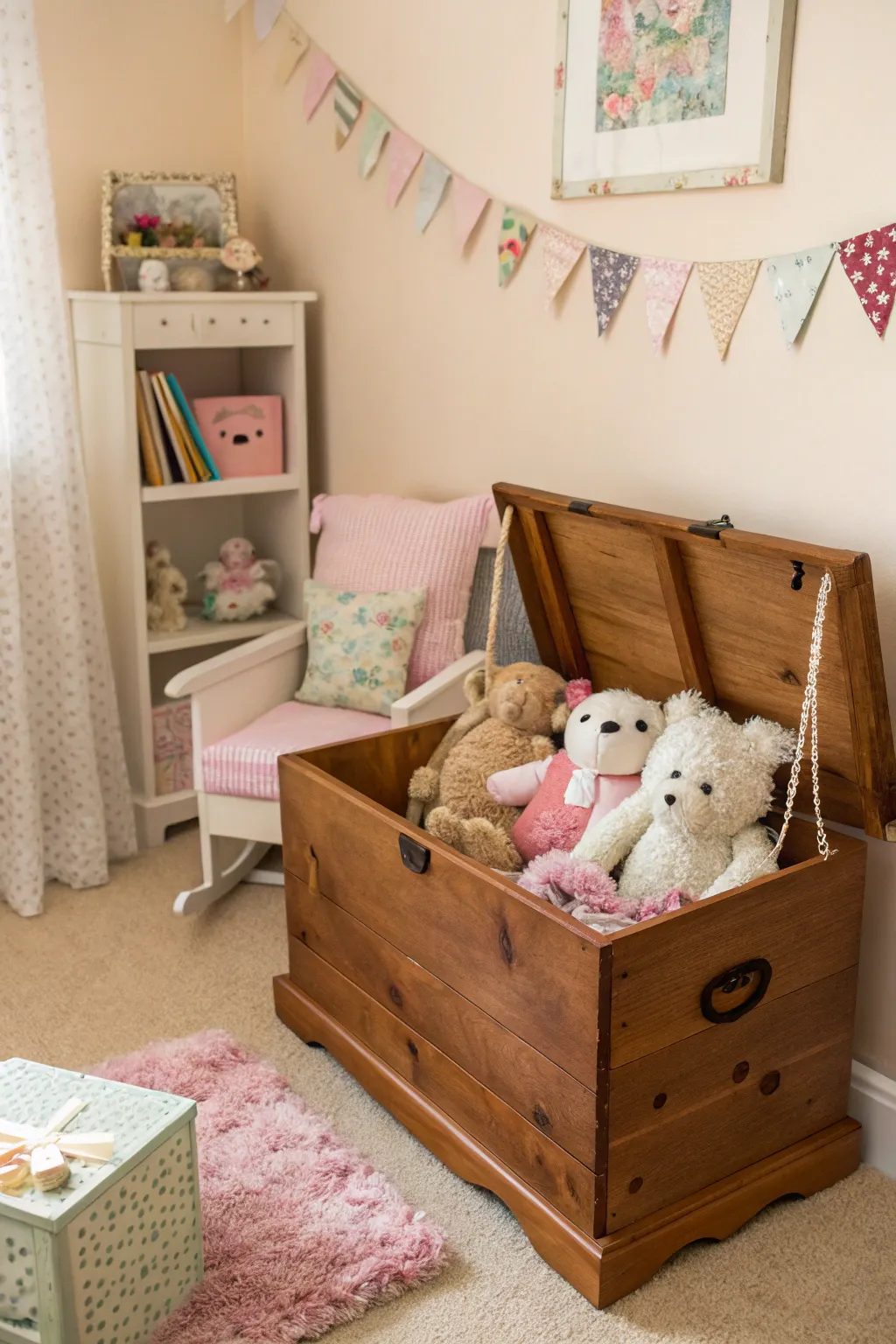 - Ornamental Storage Trunk for Playthings: Keep your stuffed animals tidy in this ornamental storage trunk, adding a timeless touch to any setting.