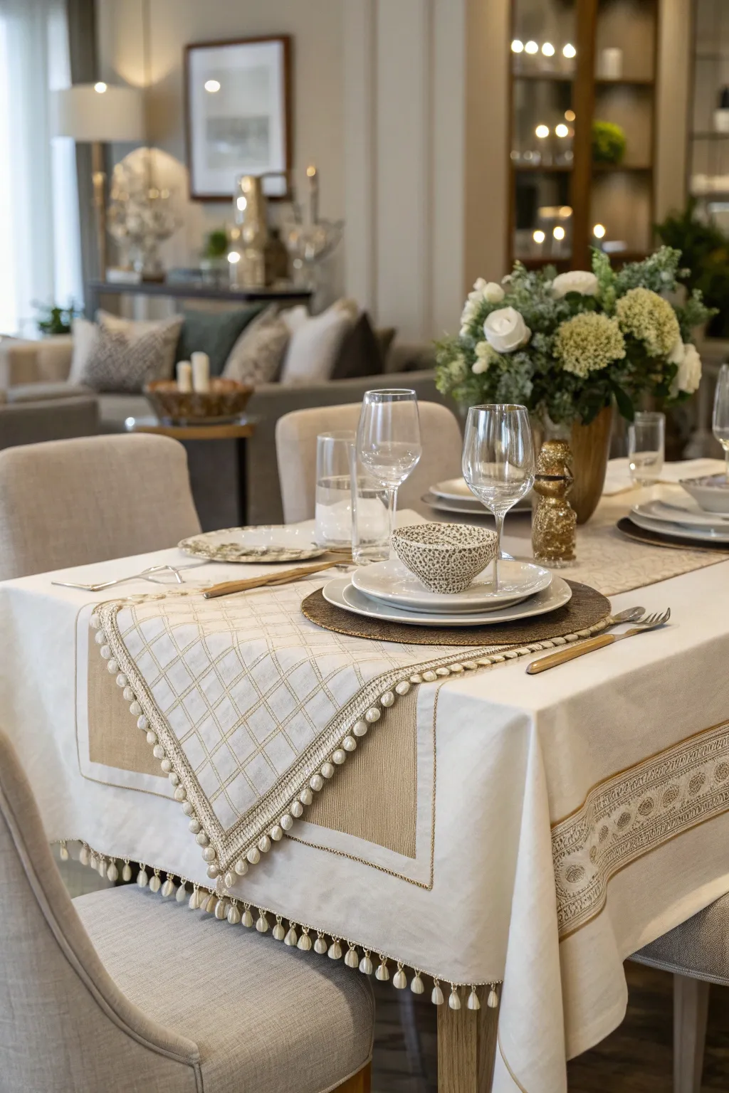 - Understated Table Cover: Establish a seamless look that unites your dining table with a chic, understated table cover.