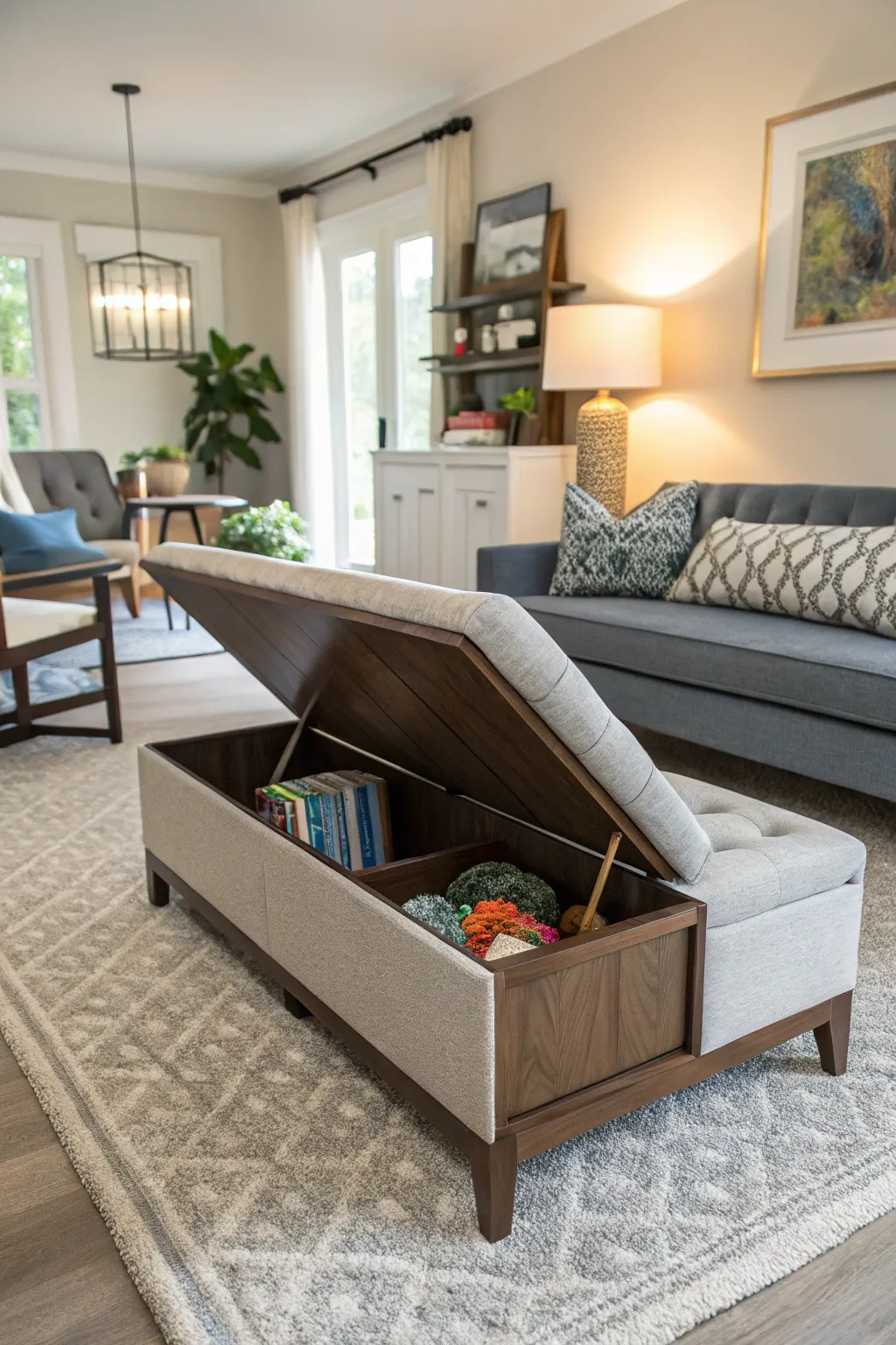 Ottomans that can be opened are ideal for putting away toys. They function as footrests and additional seating, all while helping keep clutter controlled.