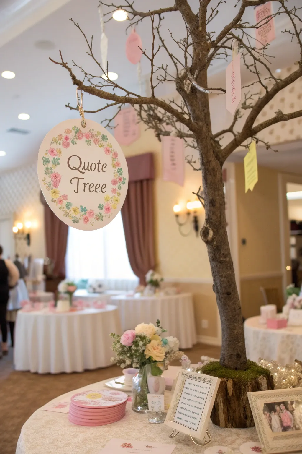 Inspire through a baby quote tree showcasing charming quotes about parenthood and babies. I feel it adds a poetic element to the celebration.