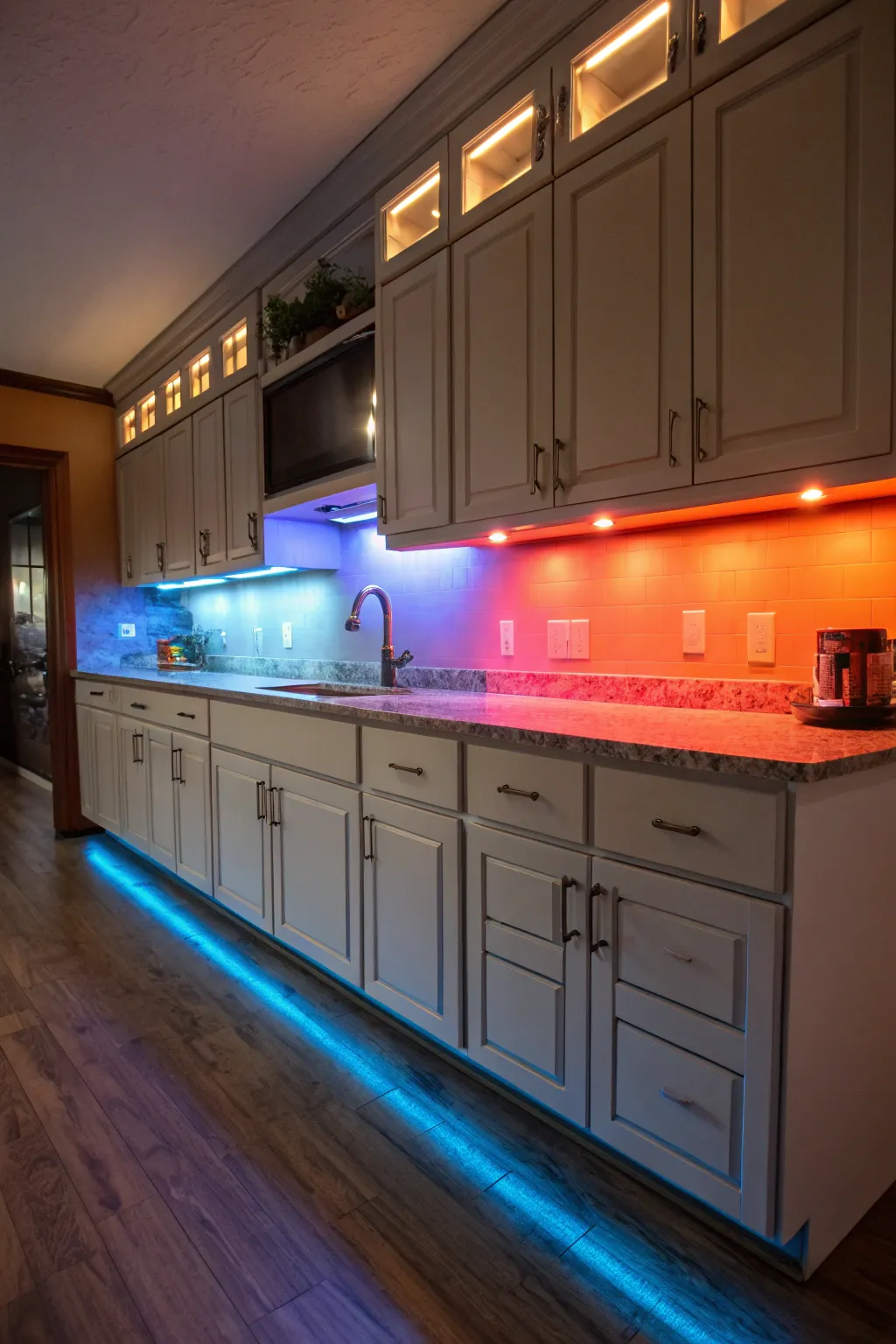 Switch things up with color-changing LEDs. These lights let you change the mood from bright task lighting to a relaxing evening glow with just a click.