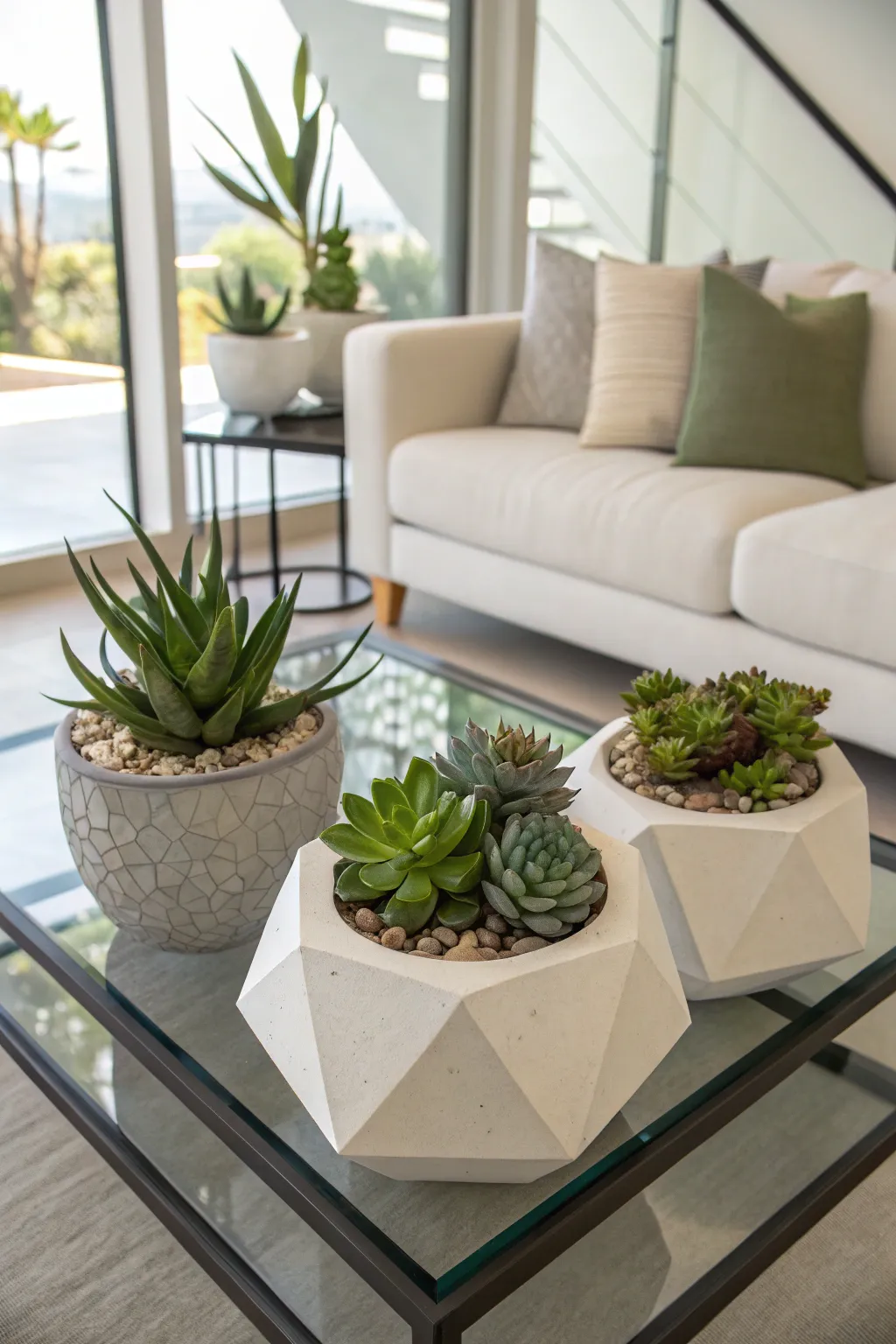 Opt for containers using geometric shapes to include a modern edge to your decorating scheme. These designs are ideal for contemporary spaces.