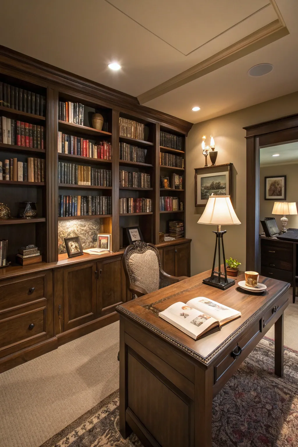 Create a study and library for a tranquil workspace. I’ve seen these locations become cherished havens for concentrated work and reading.