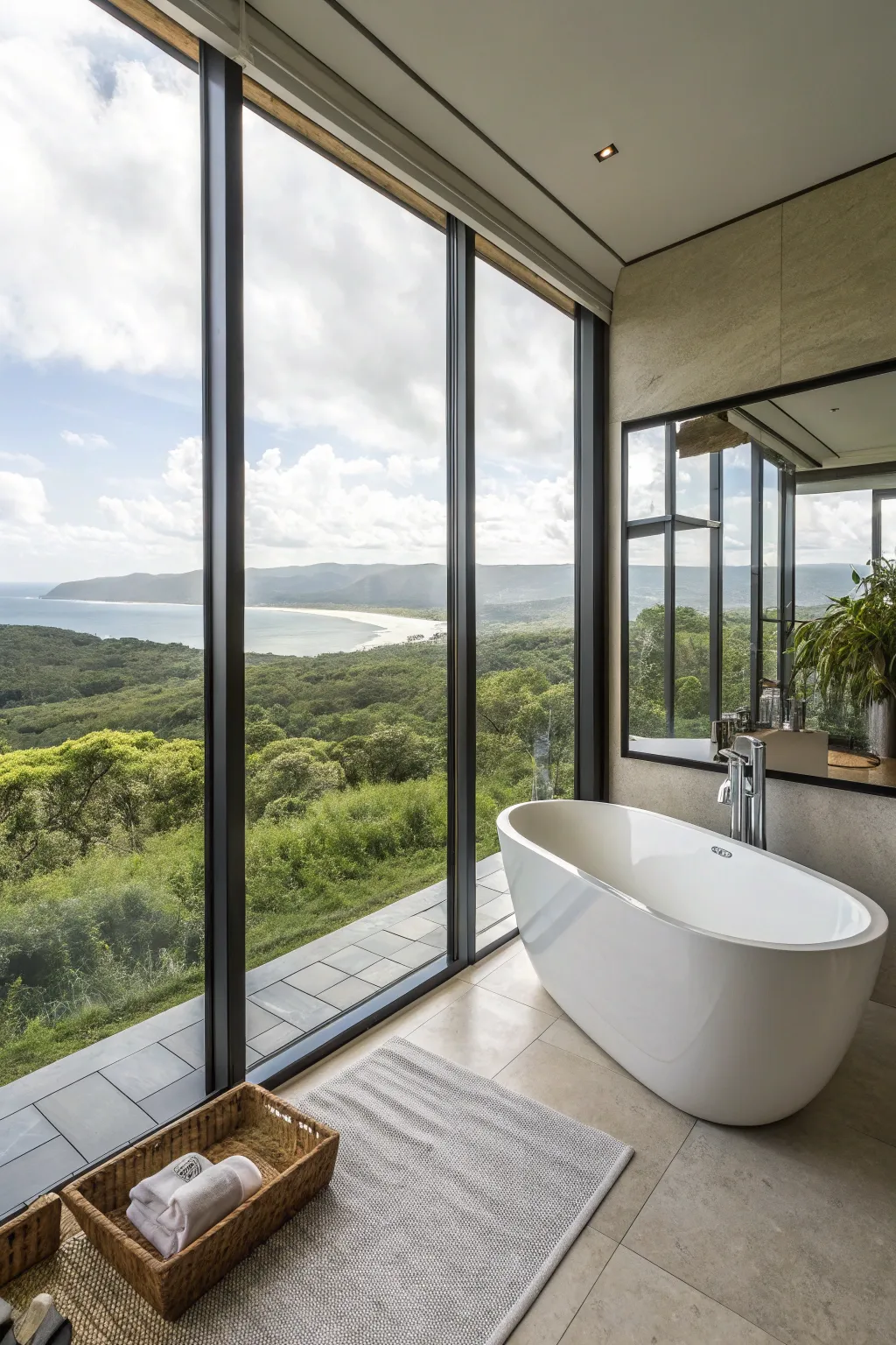 Expansive picture windows have the ability to frame an arresting vista, giving your bathroom the feel of an art gallery. It’s a design preference that consistently wows.