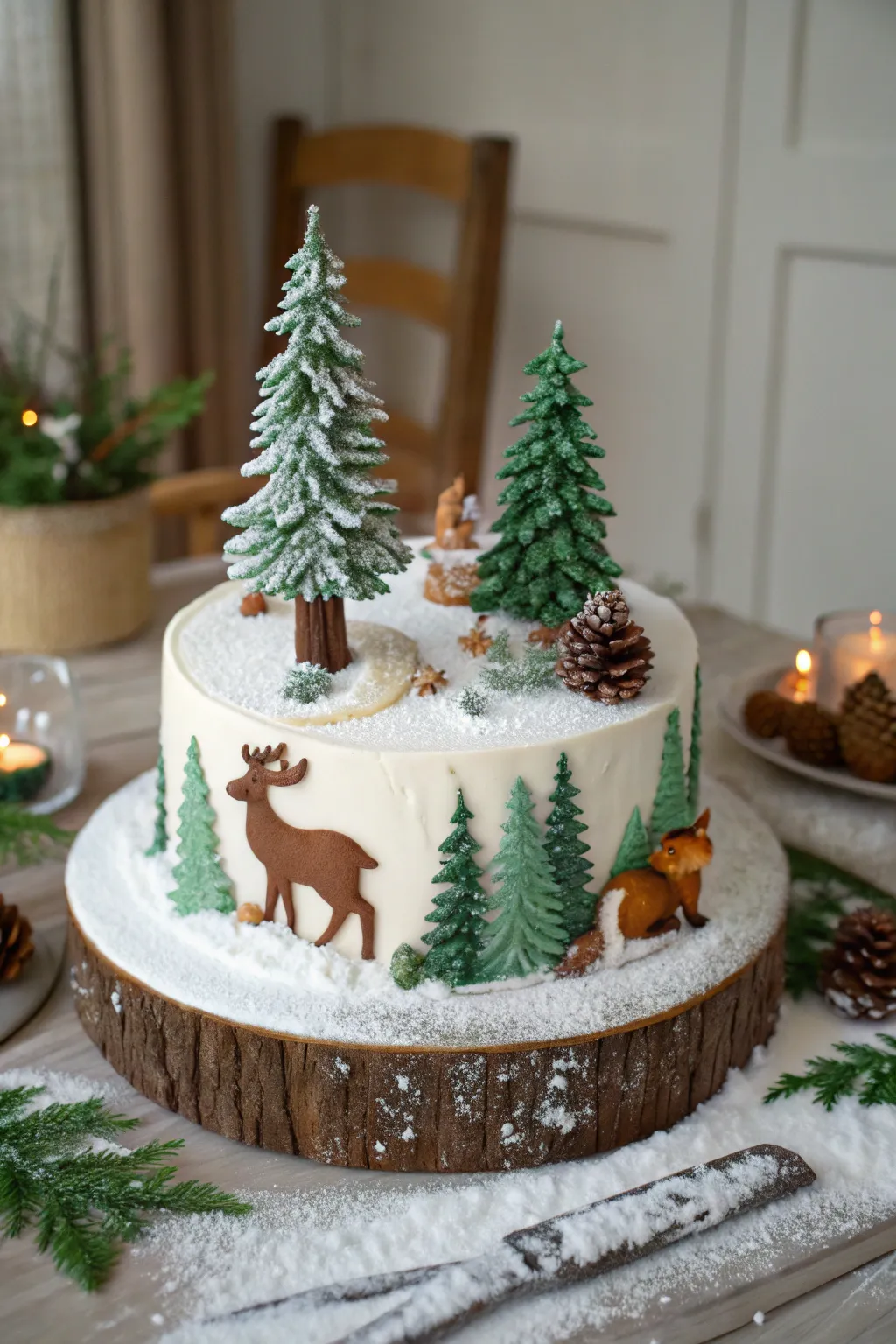 • Sweet Cedar Cake Accents: Augment your theme with authentic sweet cedars, impeccable for a winter woods cake design.